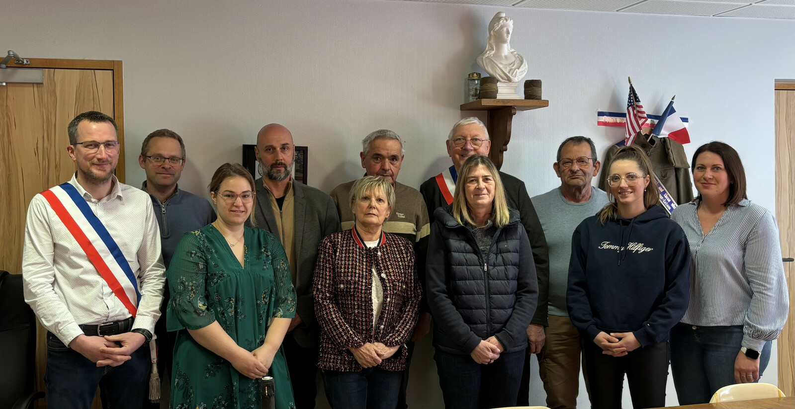 De gauche à droite : Arnaud LEMARCHAL 1er Adjoint, Benoît DAZY, Cindy GIANNINI, Frédéric FELTGEN, Patricia SKIROLE, Christophe ALVES,